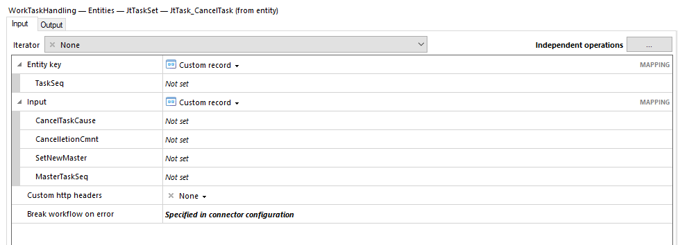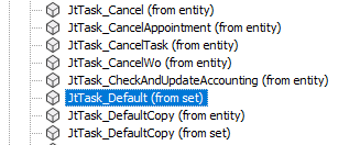 In the example above most actions are bound to a particular entity in JtTaskSet. Those actions, with name ending with (from entity), will take the entity key of the entity as input along with whatever other parameters the action requires