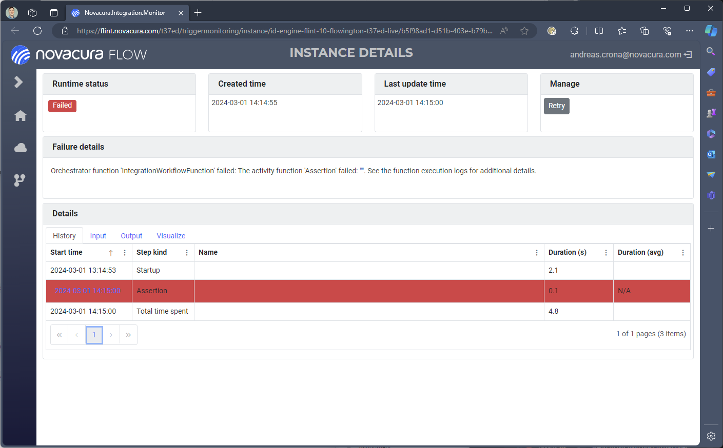 # Inspect history and retry execution